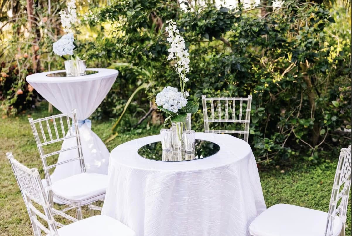 Expert event styling and design services crafting unique, luxurious atmospheres for weddings, corporate events, and private parties in The Bahamas and Spain.